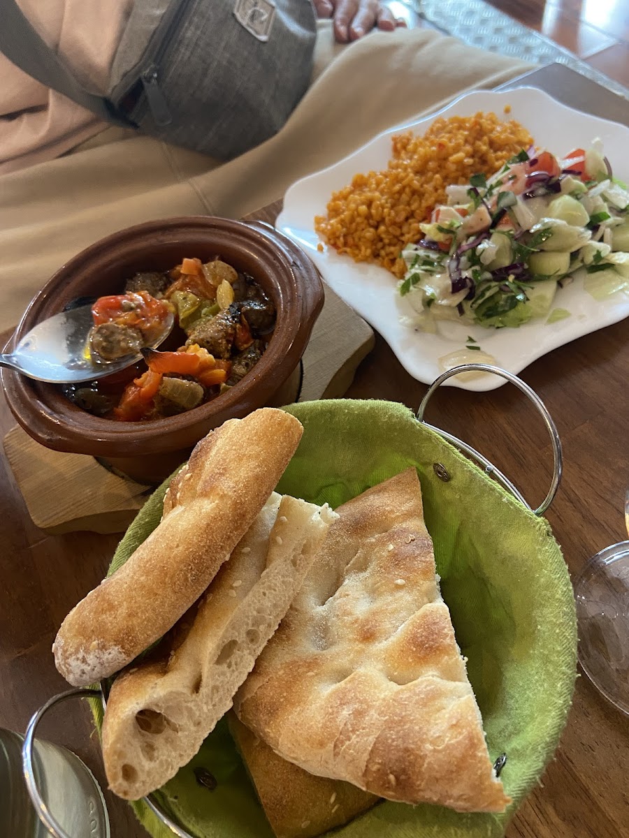 Out of chicken out of lamb, so we were left with vegetarian options, which was not so good, bread was good, the potato onion bread was delicious, but the rice was flavorless and dry and felt hard. Awesome ambience with live cultural singing and staff was super friendly!